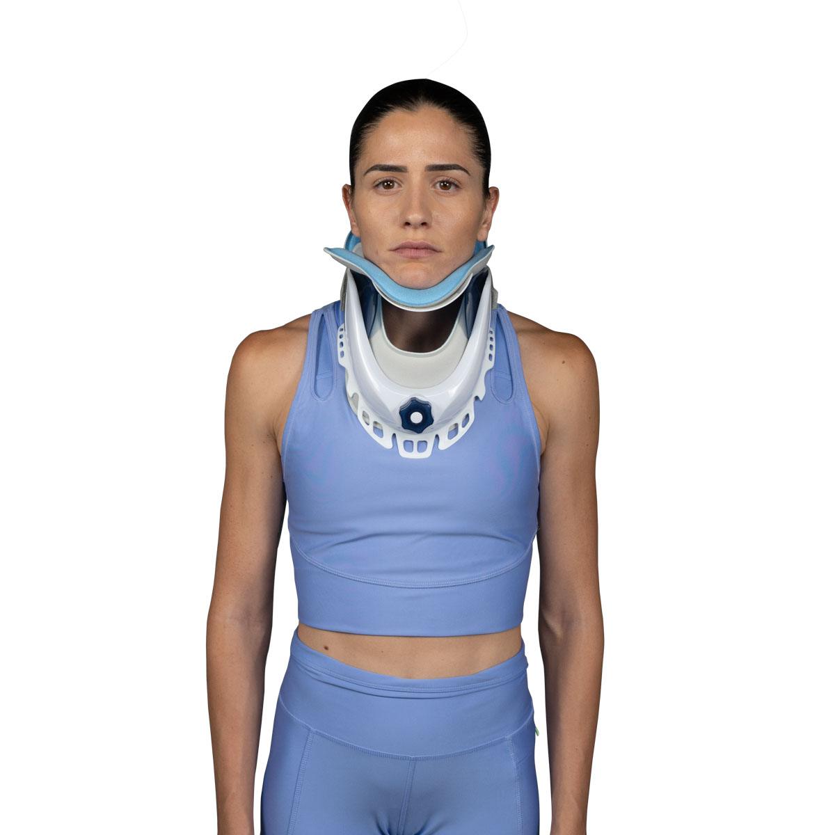 - Στο μπροστινό τμήμα φέρει τραχειακή οπή, στήριγμα ακινητοποίησης κάτω γνάθου και σύστημα ρύθμισης ύψους αυχένα.