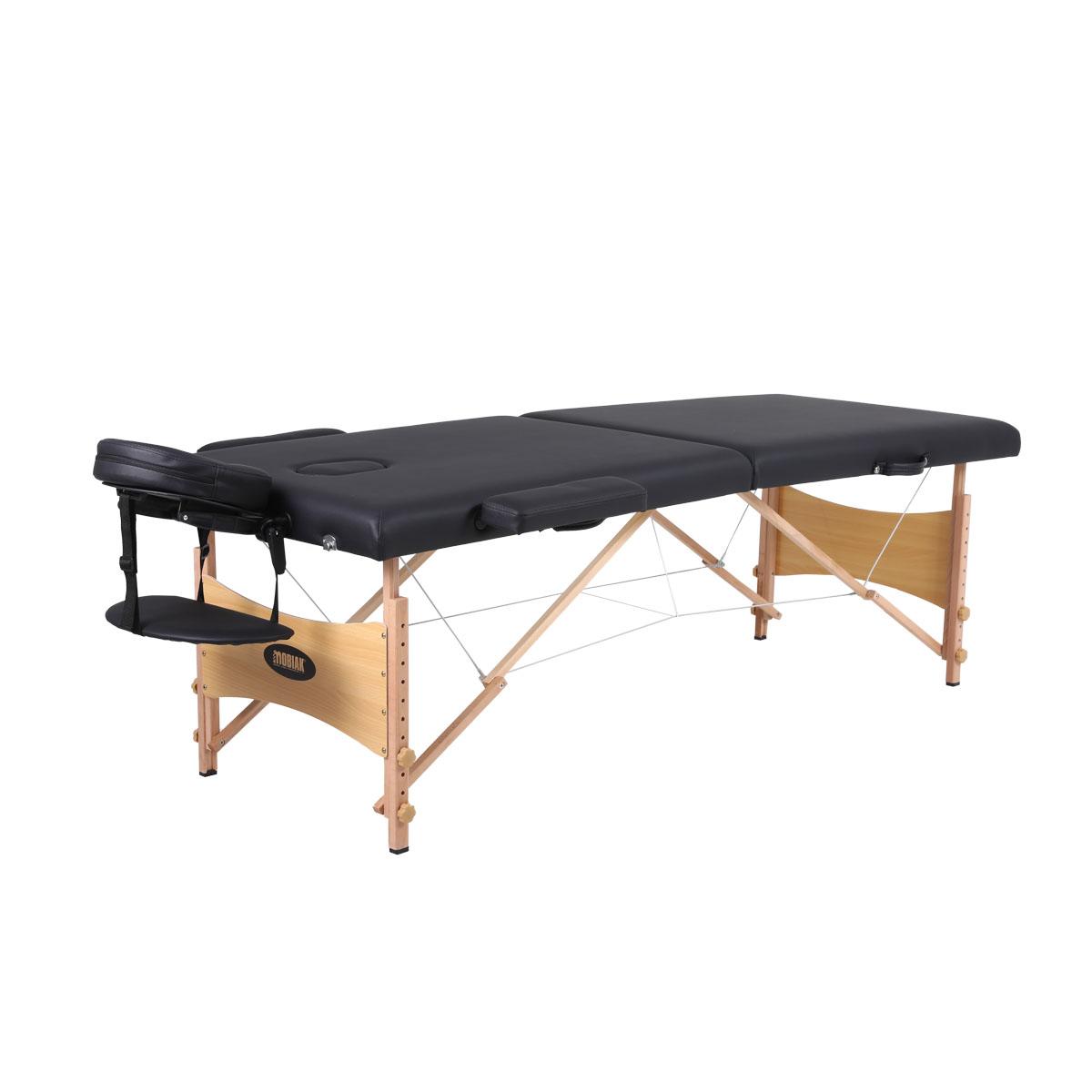 Ξύλινο πτυσσόμενο κρεβάτι μασάζ 2 τμημάτων με αξεσουάρ – μαύρο (πλάτος 70cm)